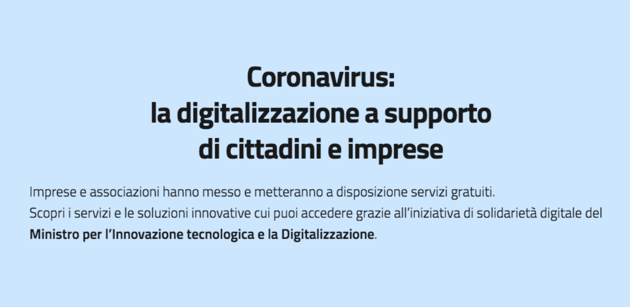 All’interno di una pagina web in continuo aggiornamento nel sito del ministero, sono raccolte tutte le iniziative proposte da aziende tech e associazioni che hanno messo a disposizione gratuitamente servizi digitali a sostegno dei cittadini italiani.